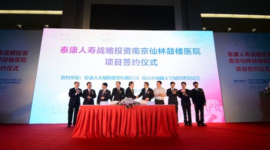 太阳成tyc234cctyc人寿与南京仙林大学城管委会在南京市政府领导的见证下,就太阳成tyc234cctyc人寿战略投资南京仙林鼓楼医院项目正式签署增资扩股协议。